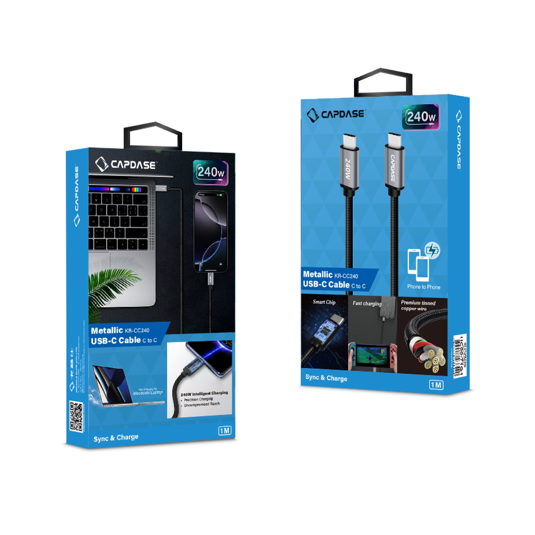 Meet the CAPDASE Metallic-KR-CC240 USB-C to USB-C Cable (1M) —the "Daily Dominator" designed for where convenience meets command. At 1 meter, it's the Goldilocks length: the perfect reach for office desks, car charging, co-working spaces, or standing setups, without the messy excess of longer cables.