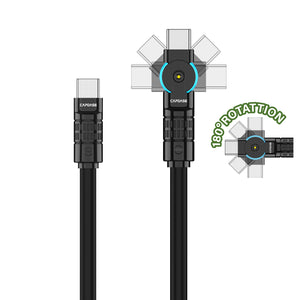 Description: CAPDASE Rotary MET-CC60 2M USB-C To USB-C Sync & Charge Cable is utilized with USB-C technology through a sophisticated production process. Unique 180° rotating elbow provides a free-angle to plug the cable in more conveniently and provides a better and more comfortable hand fit for playing a game while charging your smartphone simultaneously, providing 60W with Fast-Charge Protocol compatible for PD3.0 at any time anywhere.